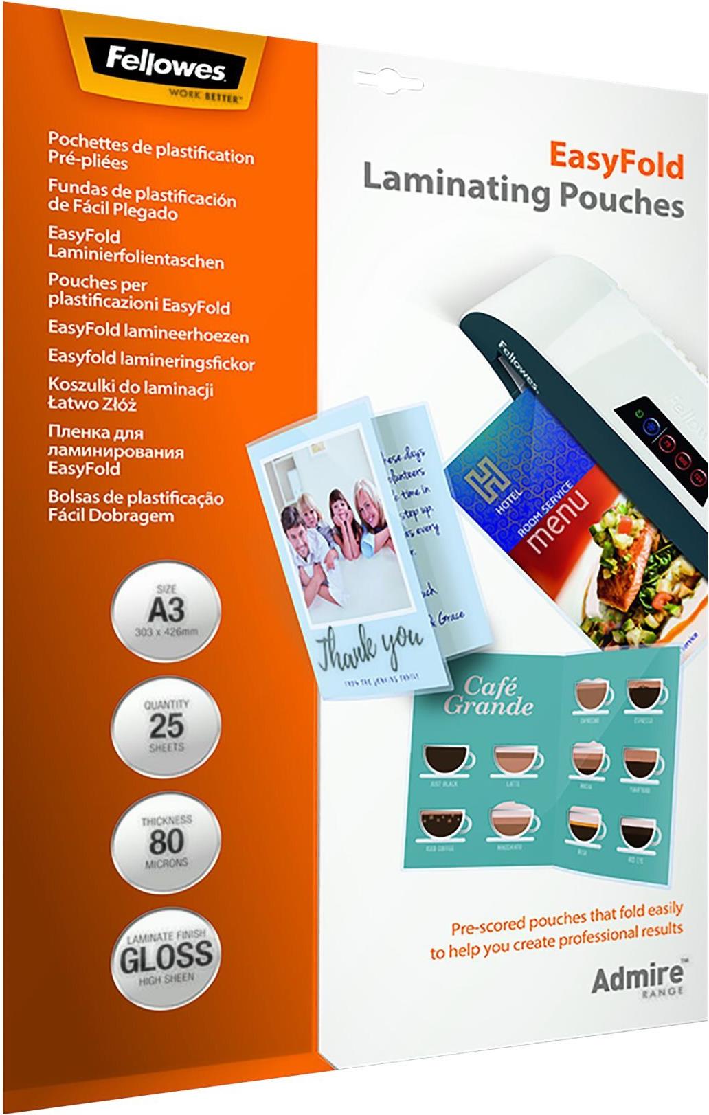 Produktbeschreibung Fellowes EasyFold - 25er-Pack - glänzend - 303 x 426 mm - Taschen für Laminierung