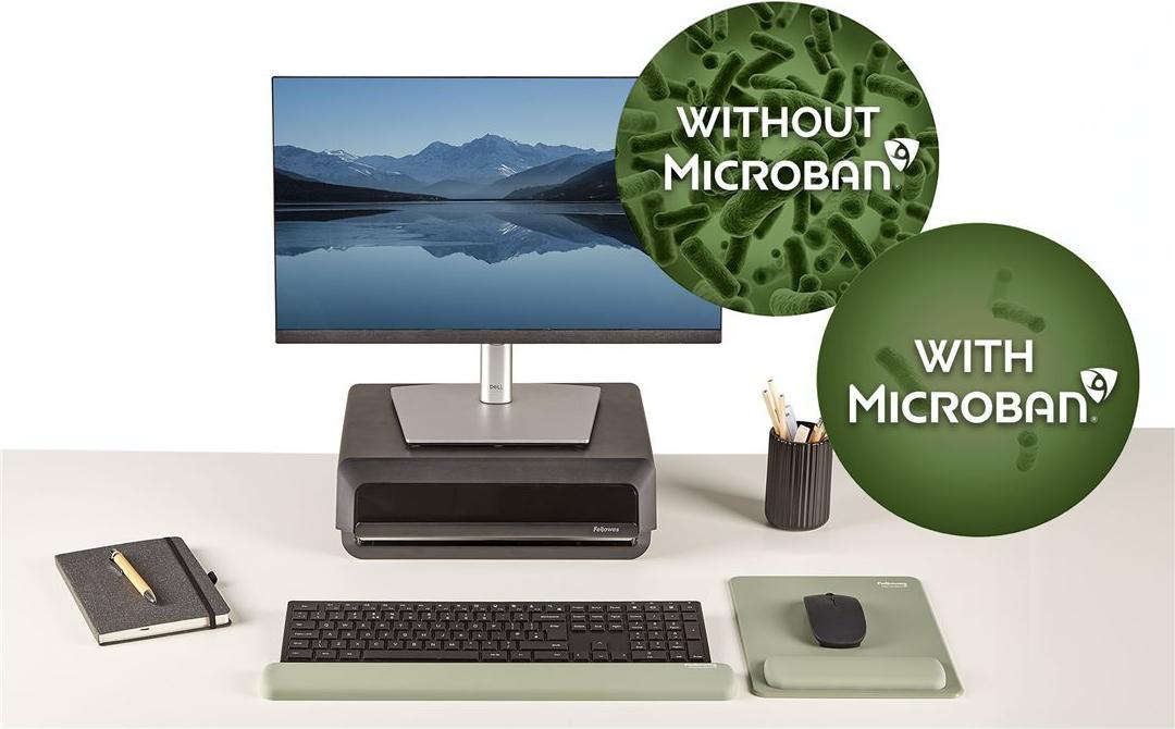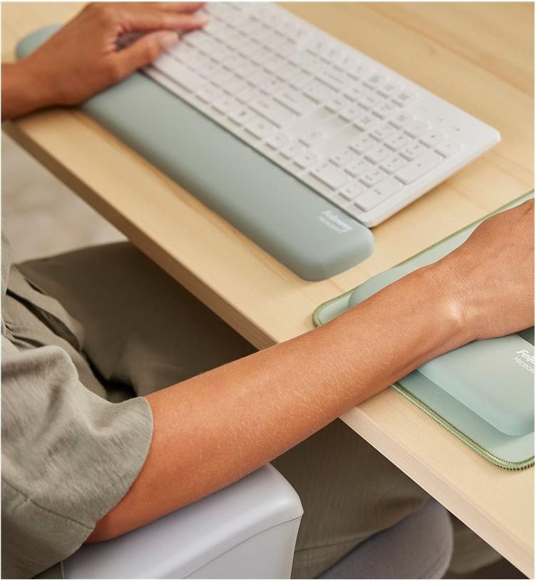 Die Fellowes Breyta Tastatur-Handballenauflage bietet Komfort und Unterstützung beim Tippen. Dank der HEX Cushion Technology passt sie sich dem Handgelenk des Benutzers an und sorgt so für ergonomische Vorteile. Die Soft-Touch-Oberfläche fühlt sich angenehm an, während der antimikrobielle Microban-Schutz das Wachstum von Bakterien reduziert. Darüber hinaus ist diese Handballenauflage staubabweisend und besteht zu 100 % aus recycelbaren Materialien, was sie zu einer umweltfreundlichen Wahl für jede Schreibtischausstattung macht.