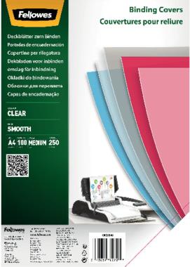 Fellowes Deckblatt, DIN A4, PET, transparent, 0,25 mm beinhaltet: 100 Blatt - 1 Stück (5384801)