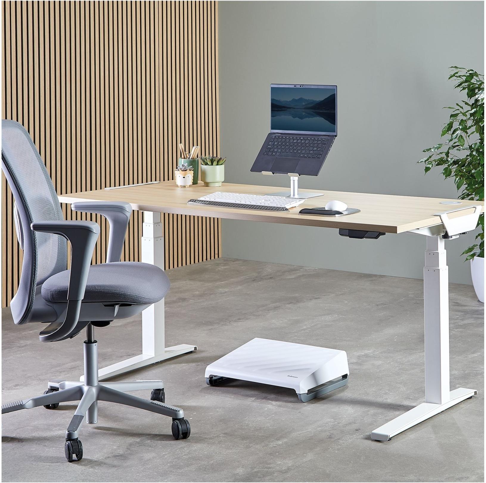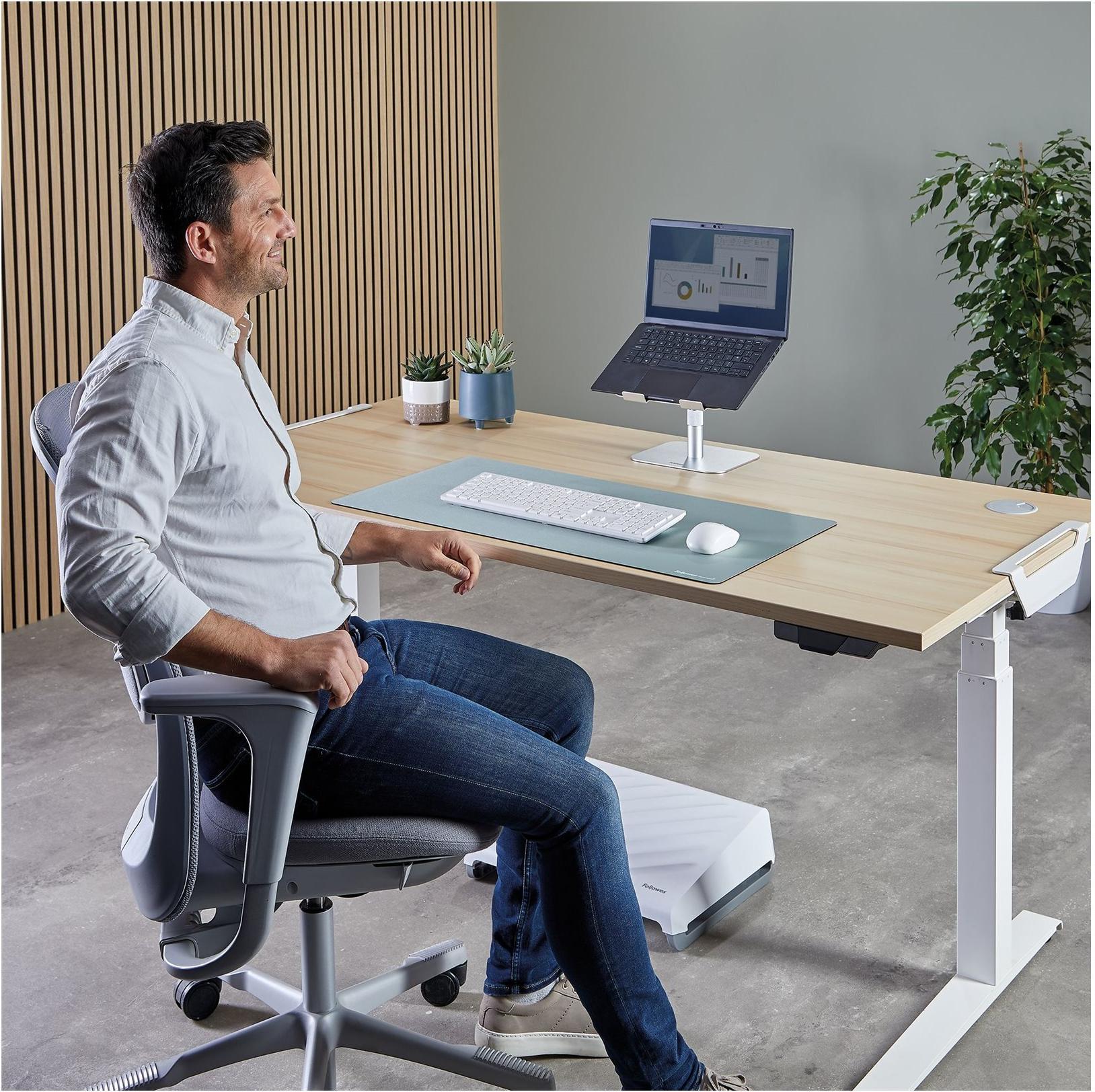 Der Fellowes Alumia Notebook-Ständer wertet Ihren Arbeitsplatz mit seinem stilvollen und funktionalen Design auf. Dieser Tischständer ist höhenverstellbar und bietet Benutzern die Flexibilität, ihre ergonomische Haltung zu optimieren. Der Ständer unterstützt Notebooks bis zu einer Größe von 15 Zoll und ist somit mit einer Vielzahl von Geräten kompatibel, wobei die maximale Traglast 5 kg beträgt. Dieses Produkt besteht zu 96 % aus recycelten Materialien und verbessert Ihre Arbeitsumgebung und trägt zur ökologischen Nachhaltigkeit bei. Der Fellowes Alumia ist die ideale Wahl für alle, die sowohl Praktikabilität als auch Umweltfreundlichkeit bei ihren Bürogeräten suchen.
