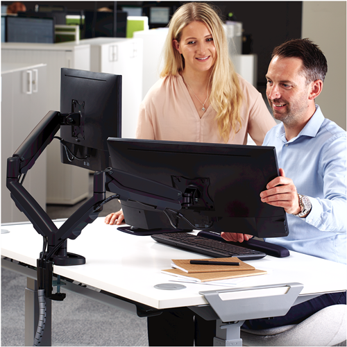 Fellowes - Befestigungskit - für 2 Monitore (einstellbarer Doppelarm) - Metall - Schwarz, RAL 9017 - Bildschirmgröße: 25,4-76,2 cm (10"-39") - Klemmmontage, Tülle, Tischmontage (9683401)