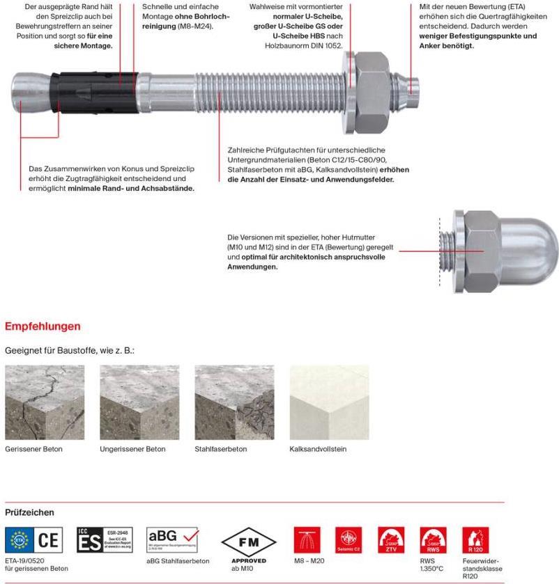 • Fischer Bolzenanker FAZ II Plus 10/10 K R (A4) Kurzversion/D-Länge 75mm VE50 (Pack mit 50 St) (564677)