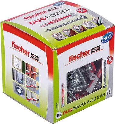 Der fischer DUOPOWER bietet sehr gute Haltewerte durch 2 Komponenten: Die graue Komponente aus hochwertigem Nylon aktiviert je nach Baustoff automatisch das optimale Funktionsprinzip (Spreizen, Klappen, Knoten) für besten Halt. Die Expansionsflügel der roten Komponente unterstützen die sichere Verspreizung und bieten zusätzliche Sicherheit zur grauen Komponente. Einfaches Eindrehen der Schraube und richtiges „Ziehen“ zum Schluss. Kein Überdrehen der Schraube. Der am Dübelkopf angeformten Rand verhindert, dass der Dübel ins Bohrloch rutscht. Die mitgelieferten Schrauben mit Panhead sind optimal auf den fischer Spreizdübel Duopower abgestimmt.