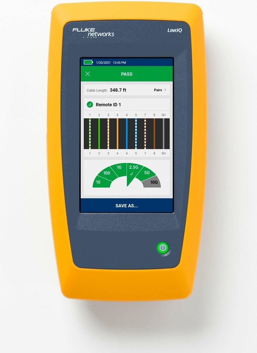 Der Fluke LinkIQ LIQ-100 ist ein vielseitiges Netzwerk-Testkit für Profis, die die Integrität von Netzwerkverbindungen sicherstellen müssen. Das Gerät verfügt über ein LCD-Touchscreen-Display mit einer Auflösung von 800 x 480 Pixeln, das für Klarheit bei der Navigation durch die Testfunktionen sorgt. Das Kit enthält ein RJ-45-zu-RJ-45-Patchkabel, ein USB-zu-USB-C-Kabel und einen modularen RJ-45-zu-RJ-11-Adapter, um verschiedene Installationsszenarien effektiv abzudecken.