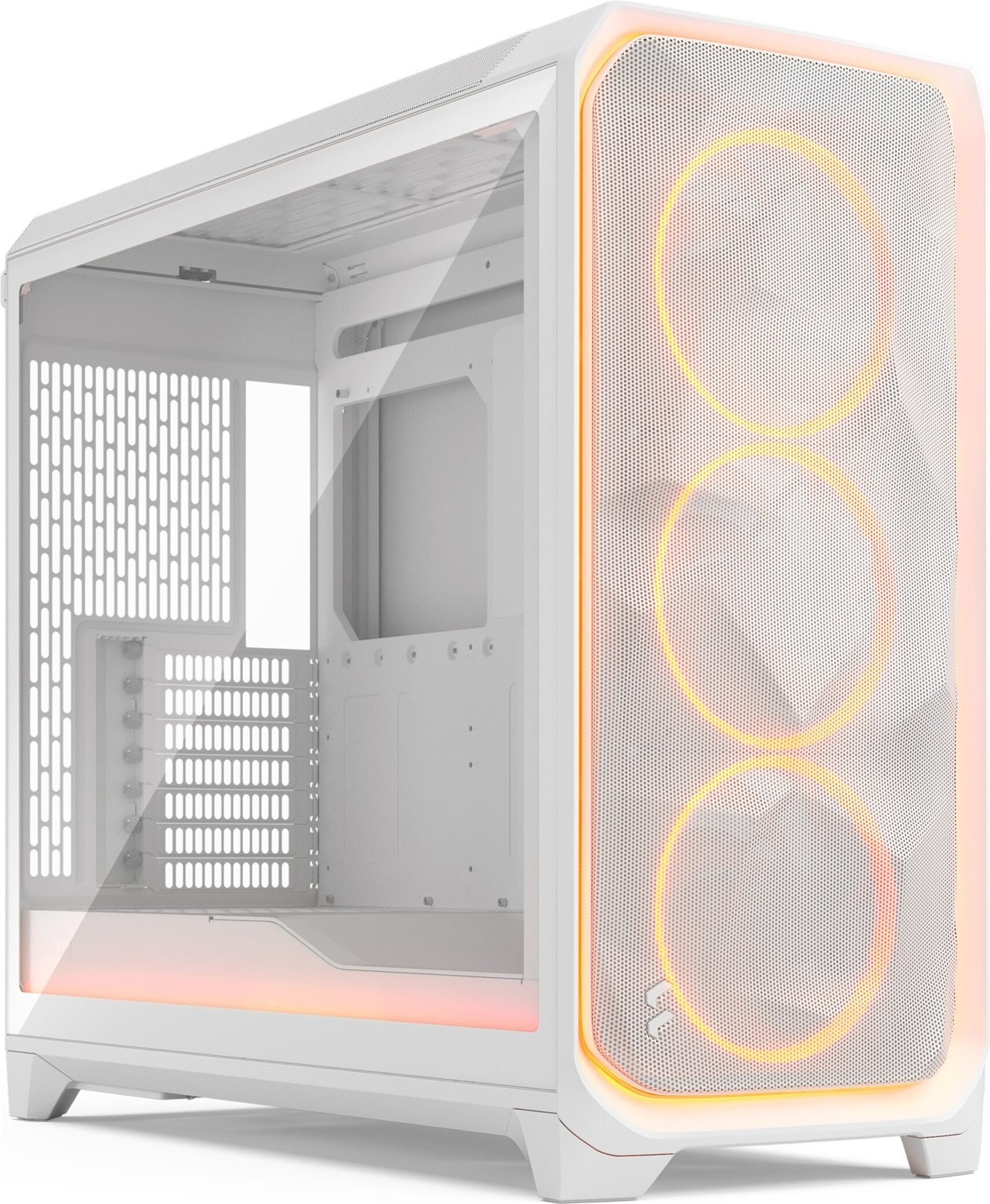 Das Tower-Gehäuse Fractal Design Meshify 3 XL Ambience Pro RGB wurde für einen optimalen Luftstrom und eine effiziente Kühlung für Hochleistungs-PCs entwickelt. Dieses Gehäuse unterstützt mehrere Radiatorgrößen und bietet Platz für einen 360-mm-Radiator oben, 280 mm oder 360 mm vorne und 120 mm hinten. Der geräumige Innenraum ermöglicht den Einbau von bis zu 6 internen Einschüben und bietet ausreichend Platz für Komponenten. Integrierte Kabelführungen und eine Kabelabdeckung sorgen für eine effektive Kabelführung. Ein Staubfilter an der Unterseite hält den Innenraum sauber und erhöht so die Langlebigkeit und Leistung Ihres Systems.