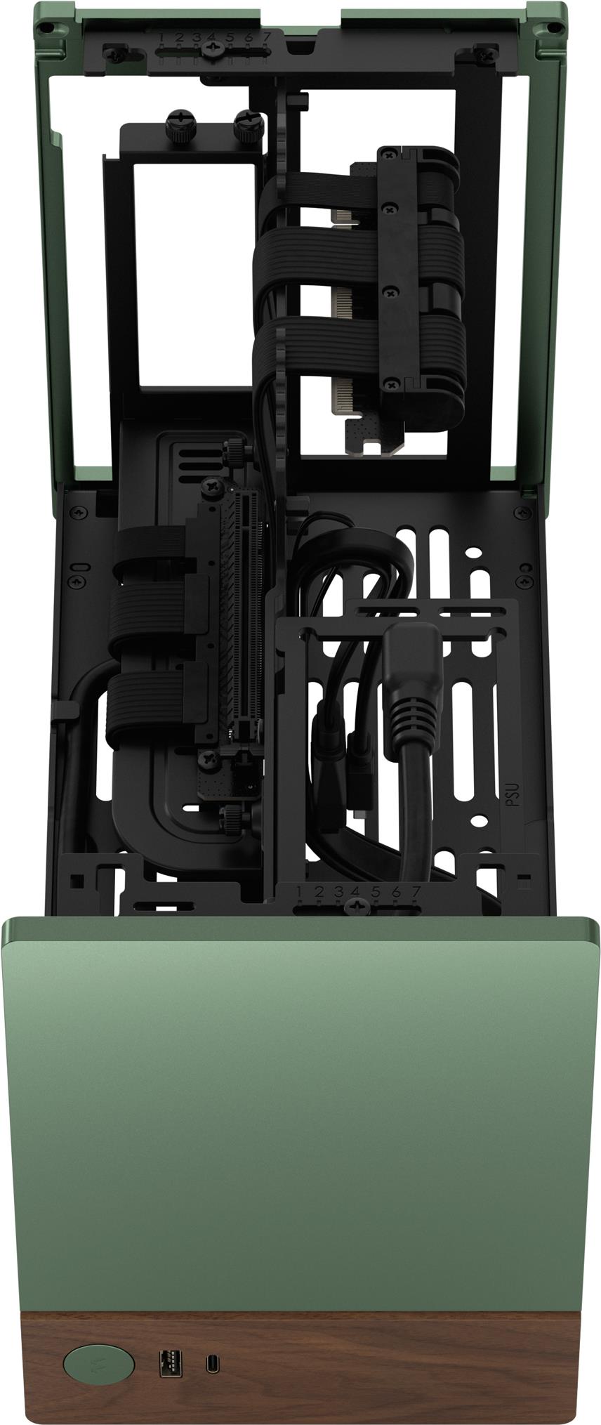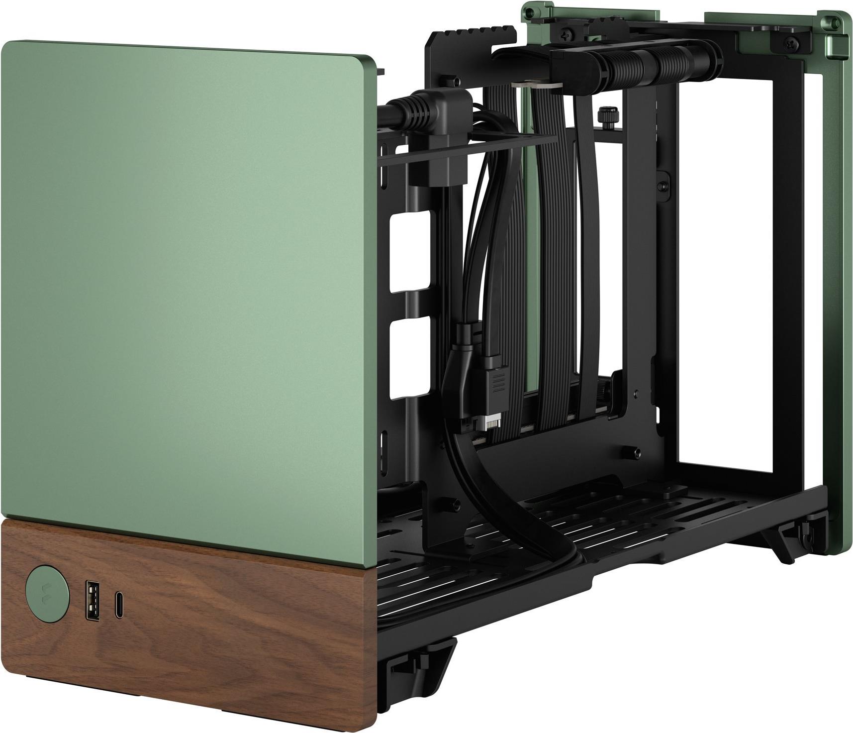 Das Fractal Design Terra definiert die Standards für kompakte PC-Gehäuse mit seinem extrem kleinen Formfaktor neu und ist damit die perfekte Wahl für Benutzer, die ein platzsparendes und dennoch leistungsstarkes Gehäuse suchen. Sein Design unterstützt einen 120-mm-Radiator in der Seitenwand und verfügt über belüftete Seiten, die sicherstellen, dass Ihre Komponenten auch bei starker Belastung kühl bleiben. Das Terra zeichnet sich durch seine werkzeuglosen Seiten- und Deckplatten aus und bietet Push-to-Lock-Mechanismen für mühelosen Zugang zu Ihrem System. Das aus hochwertigen Materialien wie eloxiertem Aluminium und massivem Walnussholz gefertigte Gehäuse verbindet Langlebigkeit mit einer schlanken, modernen Ästhetik. Darüber hinaus bietet das Gehäuse vielseitige Anschlussmöglichkeiten, darunter USB-C 3.2 Gen 2x2 und USB 3.0-Anschlüsse, die alle Ihre Anforderungen an Peripheriegeräte und Datenübertragung erfüllen. Ob für ein Home-Office, Gaming oder Multimedia-Setup, das Terra von Fractal Design beeindruckt durch seine Mischung aus Stil, Funktionalität und kompaktem Design.