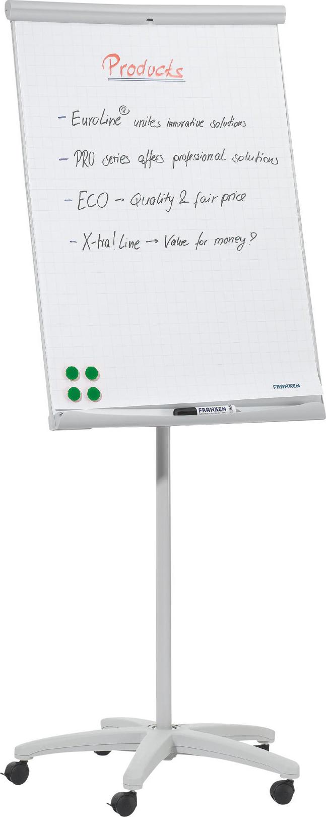 FRANKEN Flipchart U-Act! Line Mobil, 700 x 1.000 mm Tafel magnethaftend, Rundfuß mit 5 feststellbaren Rollen, - 1 Stück (FC91)