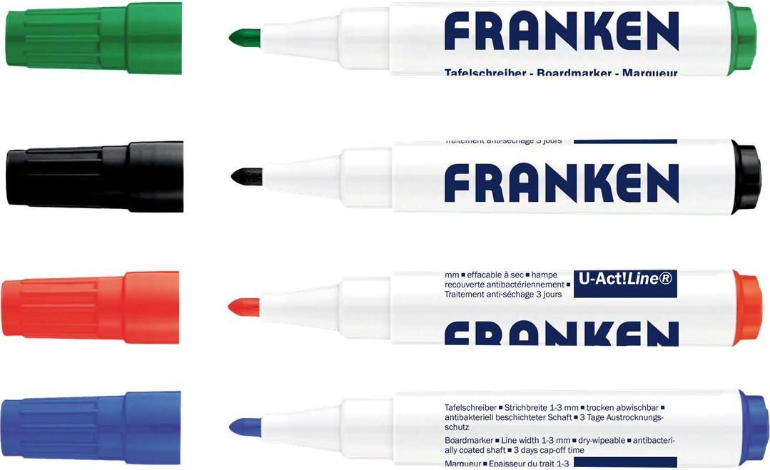 Entdecken Sie die FRANKEN u-act!line Marker, eine vielseitige Ergänzung für jede berufliche oder schulische Umgebung. Diese Marker sind mit einer einzigartigen antibakteriellen Beschichtung ausgestattet, die eine sichere Verwendung gewährleistet. Mit der Möglichkeit, auf Whiteboards zu schreiben, und der Trockenlöschfunktion bieten sie die nötige Flexibilität für dynamische Präsentationen und Brainstorming-Sitzungen. Dank ihrer speziellen Formel bleiben die Marker auch nach 72 Stunden ohne Kappe noch lebendig und einsatzbereit. Jeder Marker ist mit einer farbcodierten Kappe versehen, so dass Sie die gewünschte Farbe leicht finden können, ohne Ihren Gedankenfluss zu unterbrechen. Ganz gleich, ob Sie feine Linien zeichnen oder große Flächen ausfüllen möchten, die Rundspitze bietet eine nahtlose Kontrolle über die Linienbreite von 1 mm bis 3 mm. Nutzen Sie die Farbvielfalt in verschiedenen Farben für all Ihre Schreib- und Zeichenanforderungen, damit Ihre Ideen klar und stilvoll zur Geltung kommen.