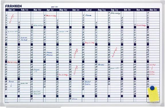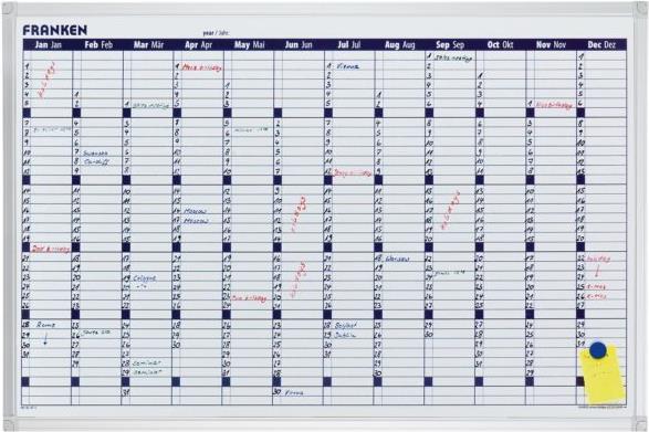 FRANKEN X-tra!Line Planungstafel Jahreskalender, 900x600 mm Tafel magnethaftend und beschriftbar, lackiert, Rahmen (VO-12)