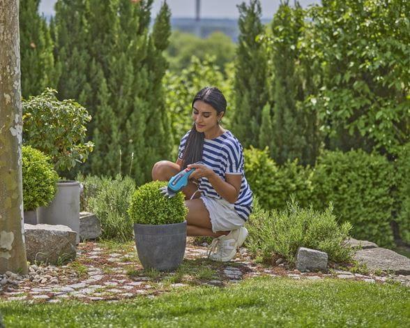 Die Akku-Grasschere ClassicCut Li von Gardena hilft Ihnen beim Schneiden von Rasenkanten im Garten. Die Klinge ist präzisionsgeschliffen und für lang anhaltende Schärfe antihaftbeschichtet. Das sorgt für einen präzisen und sauberen Schnitt. Daher eignet sich die ClassicCut Li auch für den Formschnitt von kleinen Sträuchern wie z.B. einem Buchsbaum. Das Qualitätsmesser wird in Deutschland hergestellt. Die Grasschere zeichnet sich durch ihr schlankes Design aus. Dank des ergonomischen Griffs liegt sie gut in der Hand und ist einfach zu handhaben. Der Akku hält bei voller Ladung etwa 50 Minuten. Eine LED-Anzeige zeigt den Ladestatus des Akkus an, so dass Sie ihn jederzeit im Blick haben können. Sie können die Akku-Grasschere ClassicCut Li mit Hilfe des mitgelieferten USB-C-Kabels aufladen. Das Wechseln oder Ersetzen der Klinge der Grasschere ist ganz einfach, ein Knopfdruck genügt.