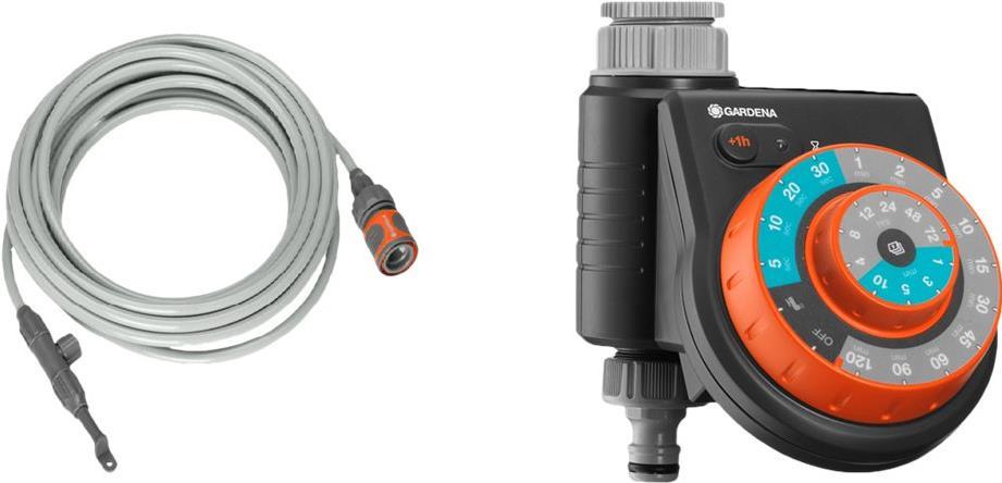 Das Gardena Sprühnebel Set sorgt an heißen Tagen für Abkühlung im Freien. Das System mit Nebeldüsen wird einfach am Sonnenschirm oder der Pergola befestigt und an den Wasserhahn angeschlossen. Die Düsen verströmen einen feinen Nebel, der die Umgebungsluft angenehm abkühlt. Die Bewässerungssteuerung Easyplus sorgt dafür, dass automatisch in kurzen, nach Bedarf einstellbaren Intervallen der Nebel aus den Düsen strömt. Das Set, bestehend aus 10 m Schlauch, 7 Nebeldüsen, 1 Regulierventil, 13 Befestigungsklemmen und OGS-Schlauchverbinder und Bewässerungssteuerung Easyplus, ist sofort einsatzbereit und mit zusätzlichen Sets erweiterbar.