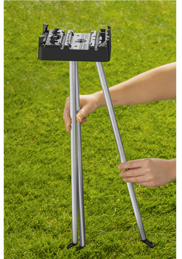 Das GARDENA Regner-Stativ sorgt mithilfe eines stabilen Dreibeins für eine Bewässerung aus einer Höhe von 50 cm.Gleichmäßige Gartenbewässerung von obenMit diesem praktischen Regner-Stativ werden Bodenregner noch flexibler in ihrer Anwendung. Das Stativ verwandelt alle GARDENA Kreis-, Viereck-, Sprüh- und Mehrflächenregner in Hochregner. Damit werden nicht mehr nur Rasenflächen und kleine Pflanzen bewässert, sondern ab sofort auch terrassierte Gärten, höhere Pflanzen sowie Gemüse- oder Blumenbeete gleichmäßig und von weiter oben mit Wasser versorgt. Die Sprühweite des installierten Sprinklers erhöht sich dabei um 0,5 bis 1 m.Werkzeuglose Montage und stabiler StandEgal, welche Art des Rasensprengers aus dem GARDENA Sortiment gewählt wird, der Aufbau verläuft dank der bequemen Steckverbindung denkbar einfach und ganz ohne Werkzeug. Die Platte zeigt an, wo ein bestimmter Regner aufgesteckt wird. Für die platzsparende Aufbewahrung nach dem Gebrauch können die Stativbeine schnell aus- und eingeklappt werden. Die drei in der Lieferung enthaltenen Heringe aus Metall sorgen für Stabilität und Halt in jeder Situation.Für jede Gartengröße gibt es den optimalen SprinklerDas GARDENA Sortiment verfügt über eine große Auswahl mobiler Gartensprinkler, die sich sowohl für kleine als auch große Rasenflächen eignen. In Kombination mit dem Regner-Stativ können beliebige Sprühregner mit einer maximal zu beregnenden Fläche von 100 m² bis zu Flächen- und Kreisregnern, die bis zu 310 m² Rasen bewässern können, ausgewählt werden. Mit Ausnahme der Artikel 1948, 8133 und 8137 lassen sich alle GARDENA Wassersprinkler auf die Erhöhung montieren.Recycelte MaterialienBei der Herstellung der Produkte achtet GARDENA auf eine zukunftsorientierte Auswahl der Materialien. Daher bestehen die im Bewässerungsstativ eingesetzten Kunststoffe zu über 75 % aus recyceltem Plastik, der aus Haushaltsabfällen gewonnen wird.