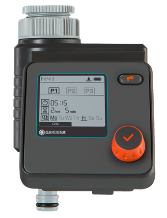 Mit der GARDENA Bewässerungssteuerung Select lässt sich die Bewässerung flexibel und individuell planen. Bis zu drei unterschiedliche und unabhängige Zeitpläne können erstellt werden. Die Steuerung ist batteriebetrieben, wird direkt an den Wasserhahn angeschlossen und lässt sich leicht durch nur einen Dreh- und Drückschalter zur Auswahl der Daten und zur Bestätigung bedienen. Ein gut lesbares LC-Display zeigt alle Einstellungen auf einen Blick an. Die wetterbeständige Bedieneinheit ist abnehmbar. Die Bewässerungssteuerung Select kann in Kombination mit einem GARDENA Bodenfeuchtesensor eingesetzt werden.