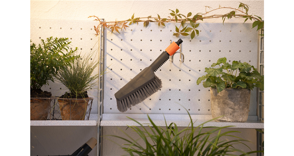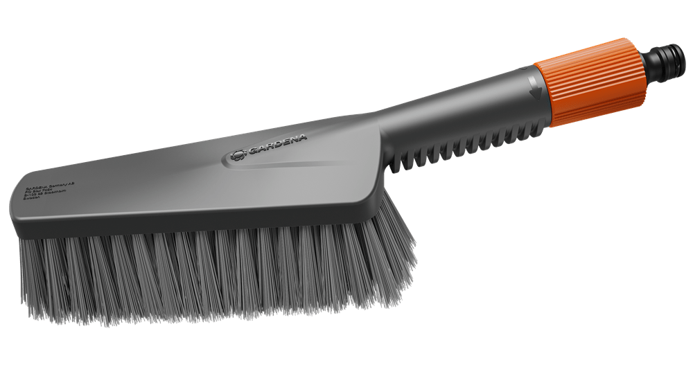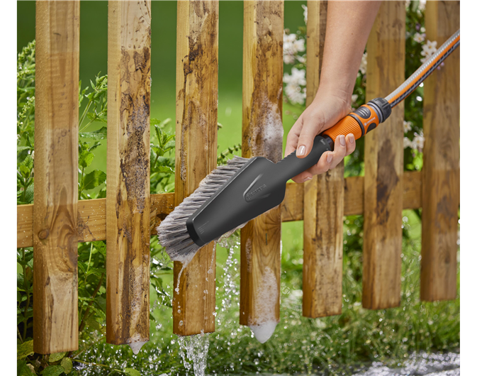 Die GARDENA Cleansystem Handbürste M soft für die sanfte und gründliche Nassreinigung kleinerer, empfindlicher Flächen im Außenbereich.Gründliche und sanfte Nassreinigung kleinerer empfindlicher AußenflächenEinfach die Waschbürste per „Klick“ an den Wasserschlauch anschließen und schon kann es los gehen. Mit der wasserführenden Handwaschbürste lassen sich problemlos kleinere, empfindliche Oberflächen, wie Fensterläden nass reinigen, ohne sich dabei ständig nach einem Eimer bücken zu müssen. Das flache und elastische Design ermöglicht eine präzise Reinigung, selbst in schwer zugänglichen Bereichen. Ecken und Kanten stellen für diese Handwaschbürste kein Problem dar und der rutschfeste Griff ermöglicht eine sichere und stabile Handhabung.Weiche Borsten zur sanften und schonenden Reinigung empfindlicher OberflächenDie weichen Borsten der Bürste wurden speziell für alle empfindlicheren Flächen im Außenbereich entwickelt. Die Reinigung von sensitiveren Oberflächen wie z. B. bei Fenster- und Rollläden erfolgt somit sanft, schonend und ohne dabei Kratzer zu hinterlassen. Mit der wasserführenden soften Bürste ist eine intensive und gründliche Reinigung im Handumdrehen erledigt. Die Soft-Handbürste für flexibles Reinigen mit regulier- und absperrbarem WasserdurchflussMit einer einfachen Drehung am Griff der Bürste kann die Wassermenge nach Bedarf eingestellt oder das Wasser ganz abgestellt werden. Die sanfte Handbürste mit stufenloser Durchflussregulierung bietet so die volle Kontrolle über die Wassermenge während der Reinigung und ermöglicht eine gezielte und effiziente Behandlung empfindlicher Oberflächen. Ein unverzichtbares Werkzeug für alle, die ständige Gänge zum Wasserhahn während der Reinigungsarbeit als störend und zeitaufwendig empfinden.Optimale Schmutzentfernung mit SeifenstäbchenDie GARDENA Seifenstäbchen (Art. 989) sorgen für eine noch gründlichere Reinigung. Einfach den Reinigungsstick in die Bürste stecken, Bürste auf den Schlauch klicken und schon wird das Shampoo optimal dosiert automatisch dem Wasser beigemischt. Das erspart ein umständliches Anmischen von Putzwasser mit speziellen Reinigungsmitteln und das Wasser-/Seifengemisch wird direkt über die Bürste auf die Oberfläche aufgebracht. Die optimale Kombination, um Rolläden und ähnliche Flächen strahlend sauber zu halten.