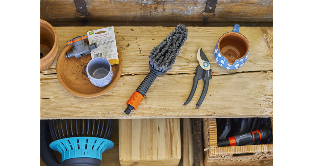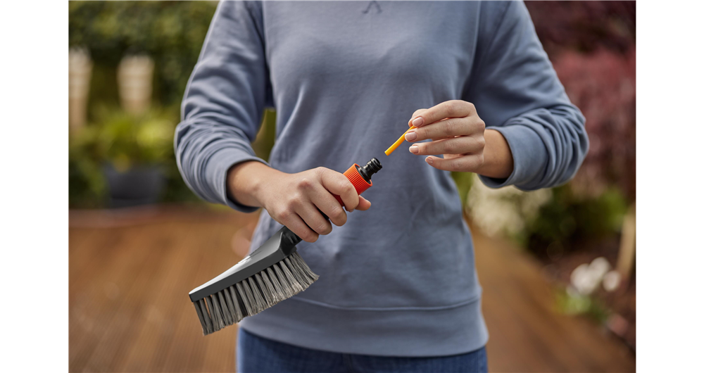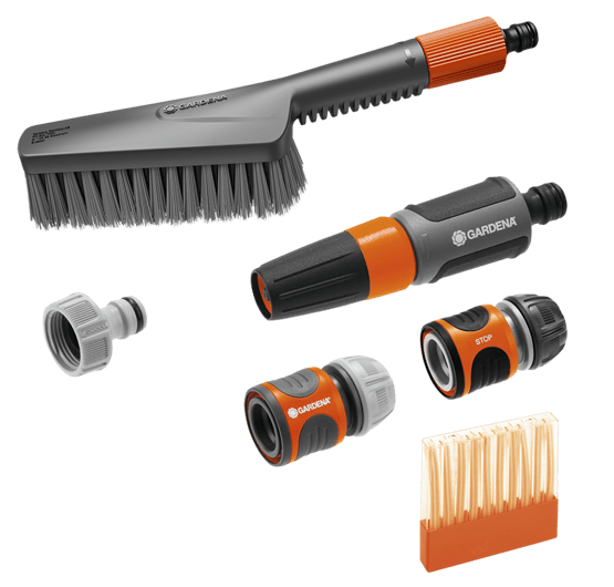 Die GARDENA Cleansystem Grundausstattung S soft beinhaltet alle nützlichen Einzelteile zur sanften Nassreinigung kleinerer, empfindlicher Flächen.Gründliche und sanfte Nassreinigung kleinerer empfindlicher AußenflächenEinfach die Waschbürste per „Klick“ an den Wasserschlauch anschließen, Seifenstäbchen einsetzen und schon kann es losgehen. Mit der wasserführenden Handwaschbürste lassen sich problemlos kleinere, empfindliche Oberflächen, wie Gartenmöbel nass und, dank der Seifenstäbchen, besonders intensiv reinigen, ohne sich dabei ständig nach einem Eimer bücken zu müssen. Das flache und elastische Design ermöglicht eine präzise Reinigung, selbst in schwer zugänglichen Bereichen. Ecken und Kanten stellen für diese Handwaschbürste kein Problem dar und der rutschfeste Griff ermöglicht eine sichere und stabile Handhabung.Weiche Borsten zur sanften und schonenden Reinigung empfindlicher OberflächenDie weichen Borsten der Bürste wurden speziell für alle empfindlicheren Flächen im Außenbereich entwickelt. Die Reinigung von Glas- oder Kunststoffoberflächen z. B. bei Outdoormöbeln erfolgt somit sanft, schonend und ohne dabei Kratzer zu hinterlassen. Mit der wasserführenden soften Bürste ist eine intensive und gründliche Reinigung der Gartenmöbel im Handumdrehen erledigt. Die Soft-Handbürste für flexibles Reinigen mit regulier- und absperrbarem WasserdurchflussMit einer einfachen Drehung am Griff der Bürste kann die Wassermenge nach Bedarf eingestellt oder das Wasser ganz abgestellt werden. Die sanfte Handbürste mit stufenloser Durchflussregulierung bietet so die volle Kontrolle über die Wassermenge während der Reinigung und ermöglicht eine gezielte und effiziente Behandlung empfindlicher Oberflächen. Ein unverzichtbares Werkzeug für alle, die ständige Gänge zum Wasserhahn während der Reinigungsarbeit als störend und zeitaufwendig empfinden.Optimale Schmutzentfernung mit SeifenstäbchenDie GARDENA Seifenstäbchen (Art. 989) sorgen für eine noch gründlichere Reinigung. Einfach den Reinigungsstick in die Bürste stecken, Bürste auf den Schlauch klicken und schon wird das Shampoo optimal dosiert automatisch dem Wasser beigemischt. Das erspart ein umständliches Anmischen von Putzwasser mit speziellen Reinigungsmitteln und das Wasser-/Seifengemisch wird direkt über die Bürste auf die Oberfläche aufgebracht. Die optimale Kombination, um Gartenmöbel und ähnliche Flächen strahlend sauber zu halten.