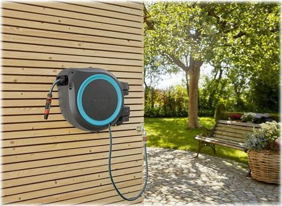 Deine Gardena Ausbringgeräte hast Du außerdem immer griffbereit: Sie können unterhalb der Wandhalterung befestigt und dort platzsparend aufbewahrt werden. Das hochwertige Material wird von einem UV- und einem Frostschutz vor Beschädigungen durch Witterungseinflüsse geschützt und kann deshalb das ganze Jahr eingesetzt werden. Zusätzlich ist die Schlauchaufbewahrung mit einem Diebstahlschutz gesichert. Alle notwendigen Anschluss- und Montageteile sind bei der Wand-Schlauchbox beigelegt: Eine Wandhalterung, ein Verbindungsschlauch, alle benötigten Original Gardena Systemteile sowie eine Spritze mit zwei verschiedenen Sprühstrahloptionen.