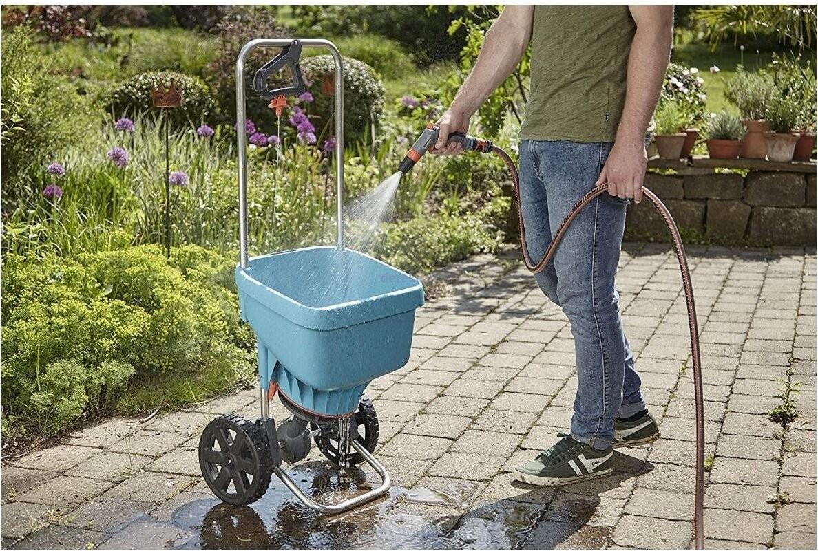 Der GARDENA Streuwagen XL eignet sich optimal zum komfortablen Ausbringen von Dünger und Streusalz auf größeren Flächen. Die Streuscheibe verteilt das Streugut absolut gleichmäßig und sauber. Der Streuwagen XL lässt ...