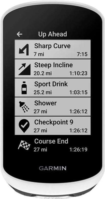 | Funktionen | AutoLap, AutoPause, Garmin Connect-kompatibel, Turn-by-Turn Routing, automatisches Scrollen, Musiksteuerung, Smart-Benachrichtigungen, VO2 Max, Connect IQ, GroupTrack, Wetterbenachrichtigungen, Ereignismeldungen, kompatibel mit Garmin Varia, Varia Radar-kompatibel, Recovery Advisor, Fahrer-zu-Fahrer-Nachrichtensystem, ClimbPro, Live Event Sharing, LiveTrack, kompatibel mit Leistungsmessgerät, Routenplaner im Gerät, VIRB Remote, kompatibel mit inReach Remote, SMS-Antwort, Anruf per SMS ablehnen (nur Android), Find My Edge, Fahrradalarm, anpassbare Datenseiten, Trendline Routing nach Beliebtheit, Positionssuche auf dem Gerät, Heatmap für die Beliebtheit, E-Bike-Routing, Beschleunigungssensor, barometisches Altimeter, ANT+ Sensor |