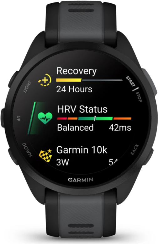 | Funktionen | GPS-Uhrzeitsynchronisierung, Sommerzeit automatisch, Sonnenaufgangs- und Sonnenuntergangszeiten, Fitnessalter, Body Battery Energy Monitor, Entspannungserinnerungen, Funktion für Atemtraining, Garmin Elevate, Antworten per Sofortnachricht, Anruferkennung, Morning Report, Steuerung der Musikwiedergabe, Geräteortung, Telefonsuchfunktion, Notfallhilfe, LiveTrack, Live Event Sharing, adaptive Trainingsanleitung, TrueUp, Move IQ, automatischer Wiederholungszähler, anpassbare Ziffernblätter, herunterladbare Workouts, HR-Zonen mit optischen und akustischen Warnungen, Auto Pause, Auto Lap, VO2 max, HRmax, PacePro-Pace-Strategien, Vorhersagen zu Zielerreichung, Echtzeit-Darstellung der Strecke, Routenführung auf Strecken, UltraTrac, automatische Aktivitätserkennung, Toe-to-Toe-Challenge, Sleep Score, Health Snapshot, Wetterinformationen |