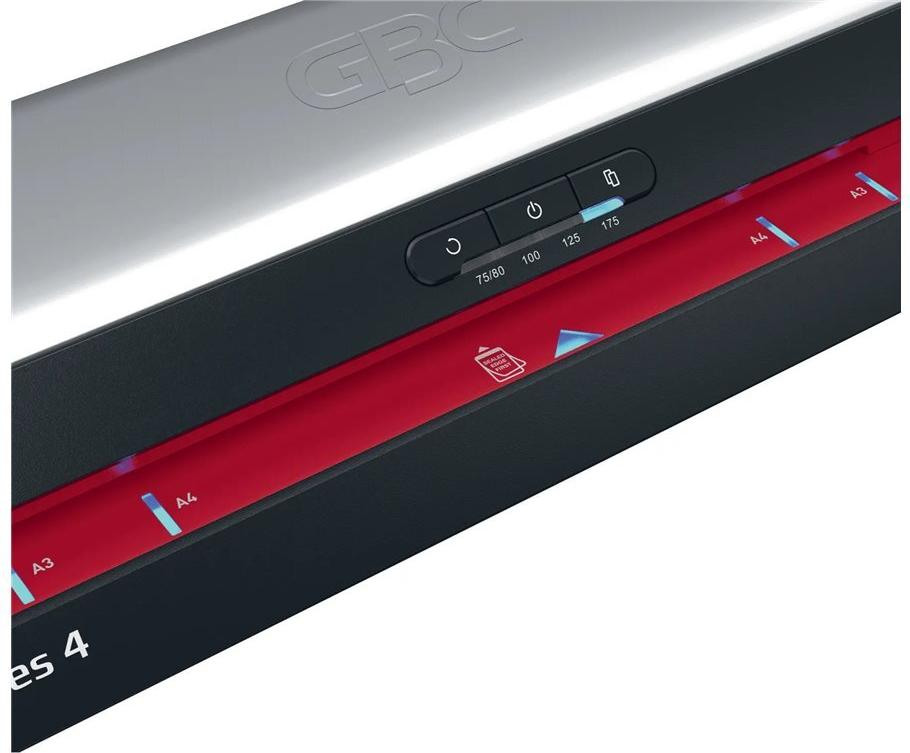 Der Laminator GBC Serie 4 480HS wurde für alle entwickelt, die eine effiziente und hochwertige Laminierung benötigen. Mit einer maximalen Arbeitsbreite von 33 cm und der Möglichkeit, Materialien bis zum Format A3 zu laminieren, eignet sich dieses Gerät sowohl für den privaten als auch für den Bürogebrauch. Die Aufwärmzeit von 1 Minute ermöglicht eine sofortige Laminierung und optimiert so den Arbeitsablauf und die Produktivität.