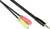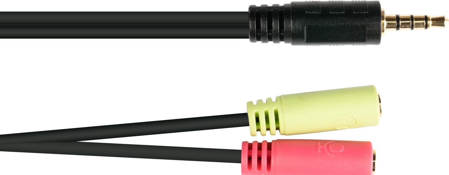 Headsetadapter, 4-poliger 3,5mm Klinkenstecker an 2x 3-polige 3,5mm Klinkenbuchse, CTIA Pin-Belegung, schwarz, 0,2m, Good Connections