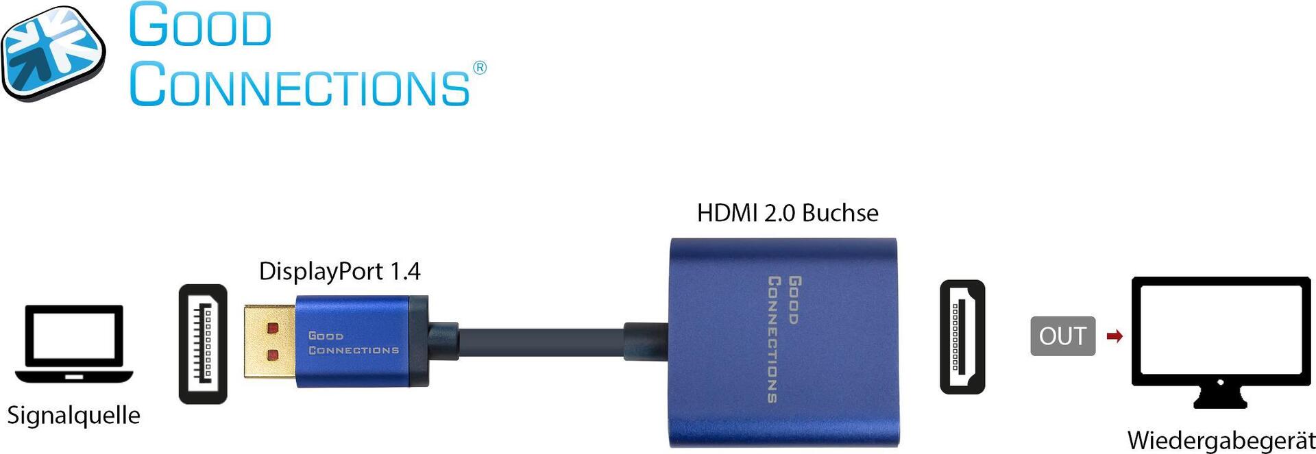 Der DisplayPort 1.4 an HDMI 2.0 Adapter von Good Connections® ermöglicht eine Signalübertragung bis 4K ...