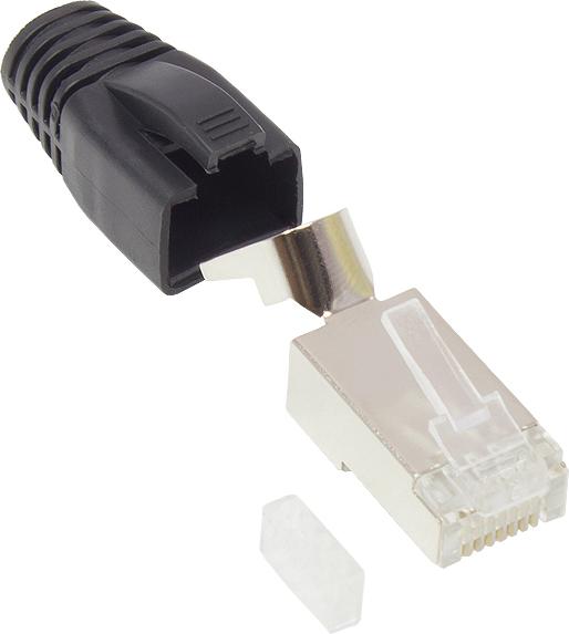 RJ45 Netzwerkstecker Cat.6A, geschirmt, fürCat.7 Rohkabel, Cat.6A, Cat.6 Kabel, inkl. Zugentlastung und Einfädelhilfe, schwarz, Good Connections®