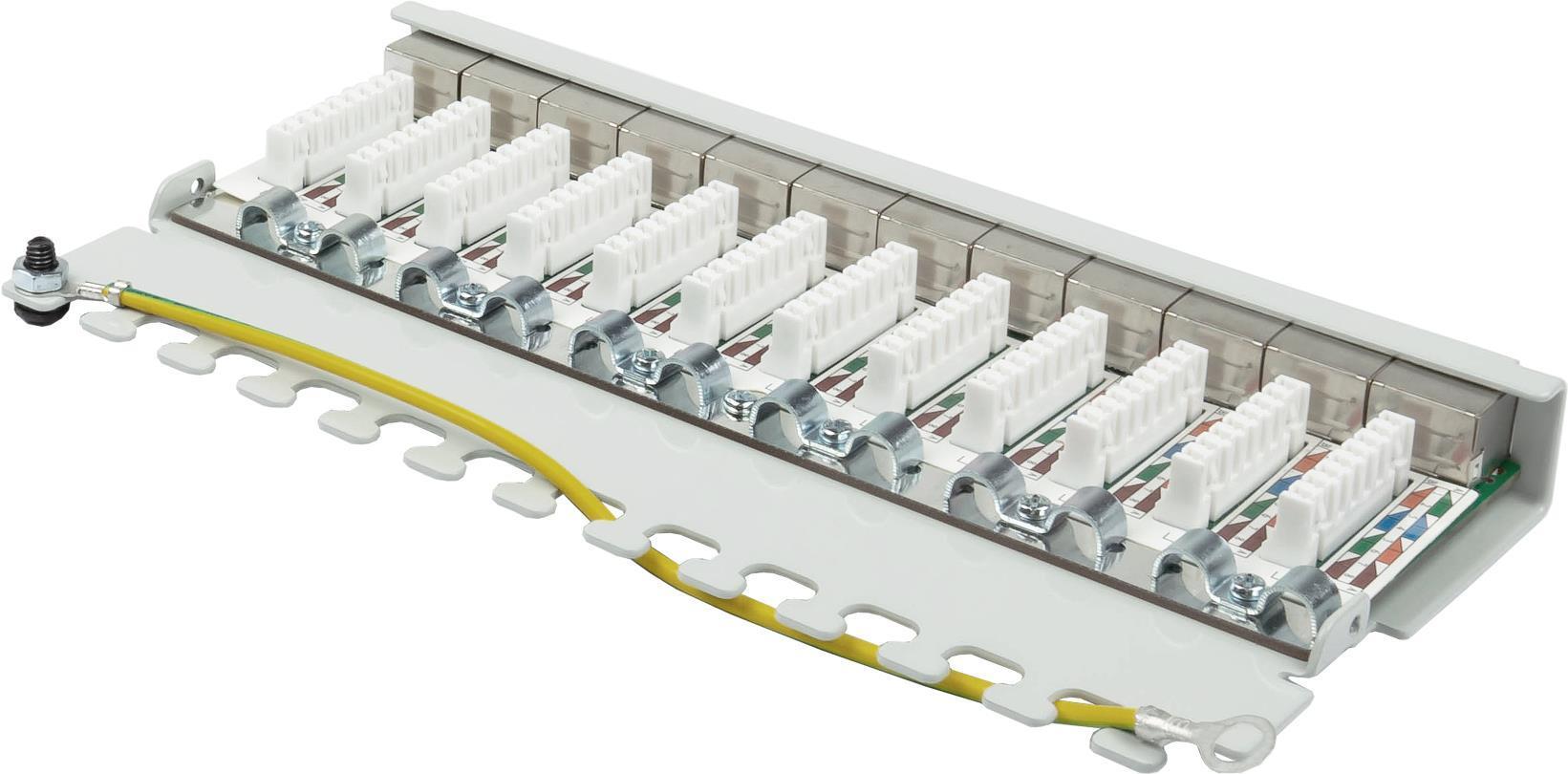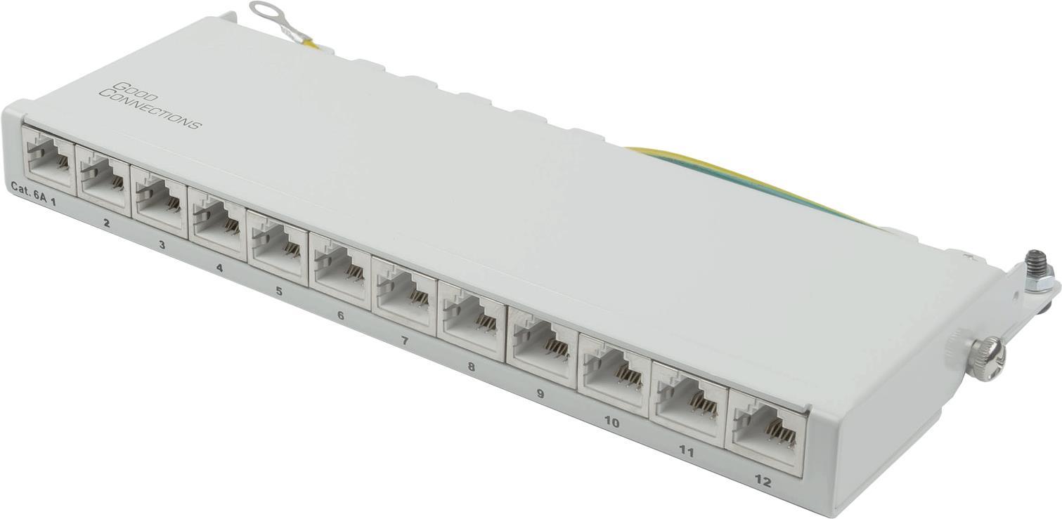Das vollgeschirmte Cat. 6A Patchpanel von Good Connections® ist aus stabilem 1,5 mm Stahlblech gefertigt und für Ethernet-Netzwerke bis 10 Gigabit/s geeignet. Vorderseitig können unterschiedliche Netzwerkgeräte mittels RJ45 Patchkabeln angeschlossen werden. Rückseitig erfolgt der Anschluss der Massiv- oder Litzenkabel über LSA Leisten. Werkzeugloses Öffnen und Schließen Die Gehäuseabdeckung ist mit zwei Schrauben befestigt. Diese können wahlweise mit einem Schraubendreher oder per Hand gelöst bzw. festgezogen werden.