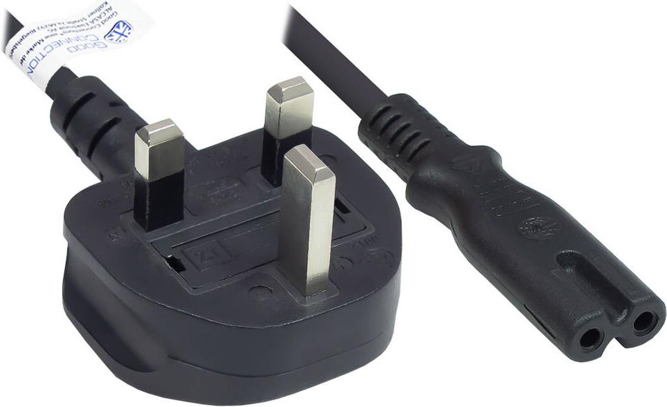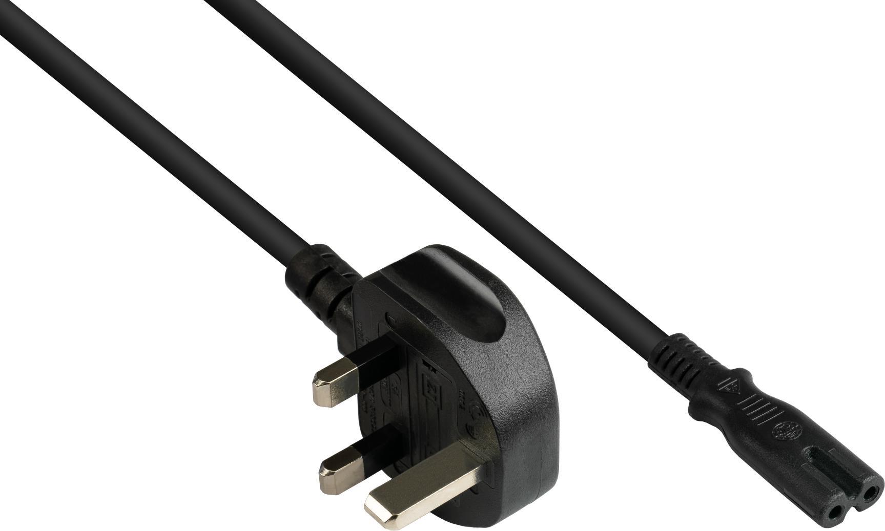 Netzkabel England/UK Netz-Stecker Typ G (BS 1363) an C7/Euro 8 Buchse (gerade), 3A, ASTA, schwarz, 0,75 mm², 1,8 m, Good Connections®