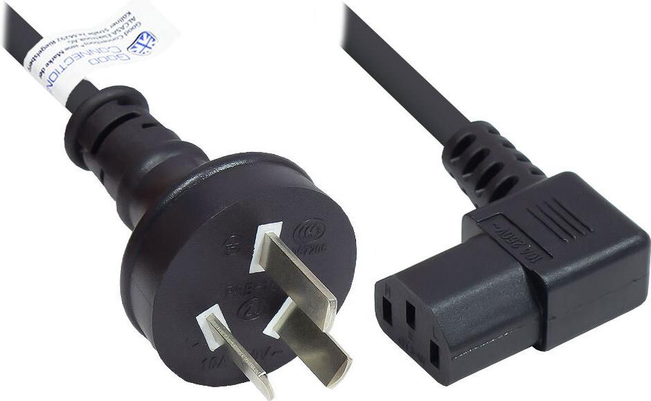 Netzkabel China Netz-Stecker Typ I (gerade) an C13 (rechts gewinkelt), CCC, schwarz, 0,75 mm², 1,8 m, Good Connections®