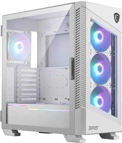 | Systemgehäuse-Merkmale | Unterstützt Radiator (120 mm) in der Rückseite, Staubfilter unten, unterstützt 120/140/240/280/360 mm Radiator in Vorderwand, unterstützt 120/140/240/280/360 mm Radiator oben, Frontplatte aus gehärtetem Glas, magnetischer Staubfilter oben, wärmebehandeltes Glas, linkes Panel, unterstützt 120/240 mm Heizkörper im Seitenpaneel, MSI RGB Mystic Light Sync, ARGB-Lüfter, LED-Steuertaste, 1 auf 6 ARGB LED-Steuerplatine |