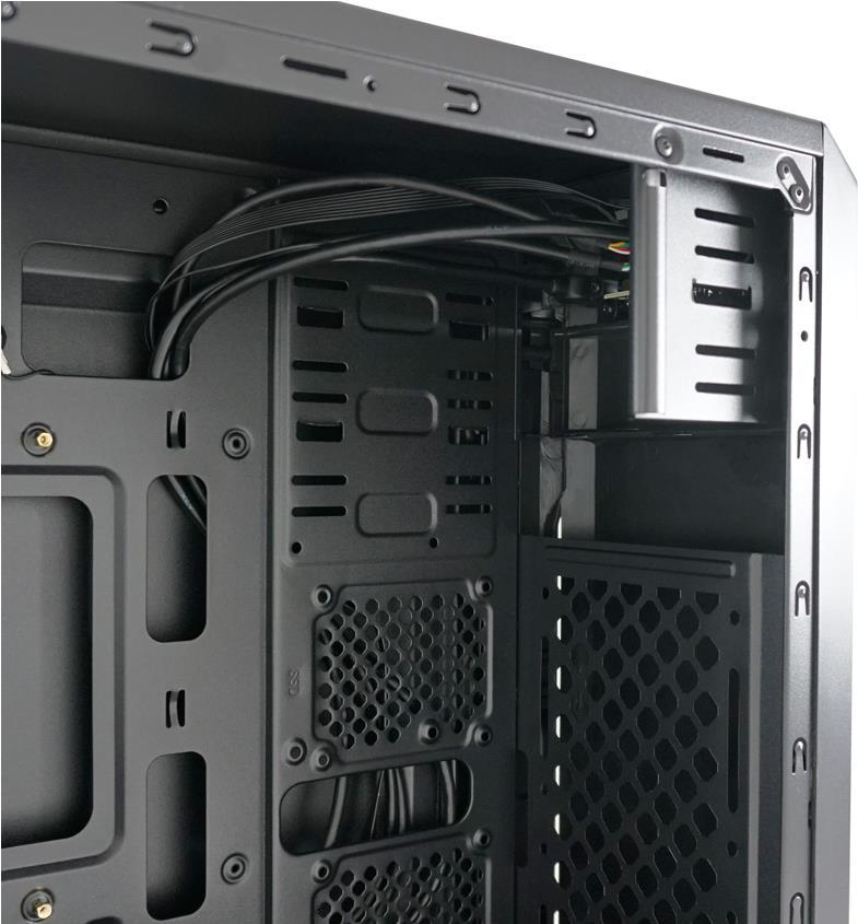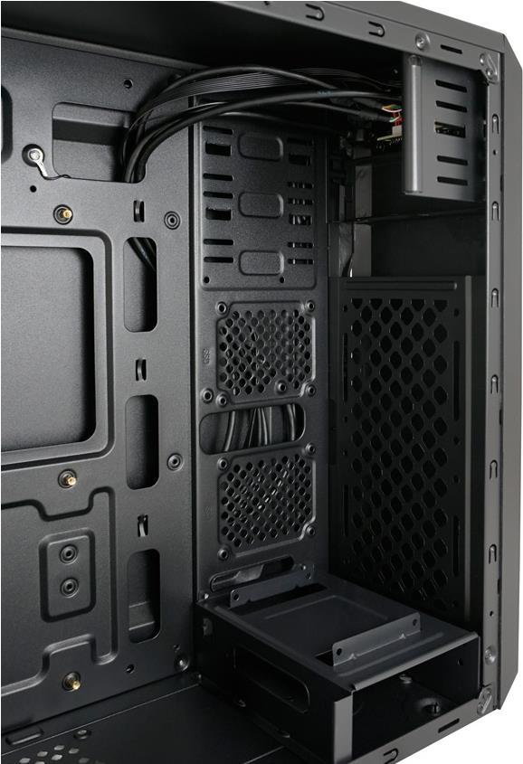 | Kühlsystem | Vorderseite: 120 mm Lüfterhalterung x 1 Seite: 120 mm Lüfterhalterung x 1 Rückseite: 80/92 mm Lüfterhalterung x 1 Intern: 120 mm Lüfterhalterung x 1 |