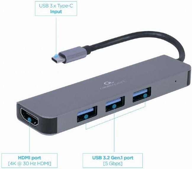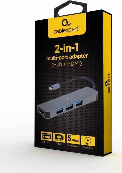 Gembird A-CM-COMBO2-01 - USB 3.2 Gen 1 (3.1 Gen 1) Type-C - HDMI - USB 3.2 Gen 1 (3.1 Gen 1) Type-A - USB 3.2 Gen 1 (3.1 Gen 1) Type-C - 3840 x 2160 Pixel - 625 Mbit/s - Grau - Metall (A-CM-COMBO2-01)