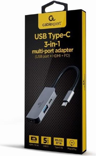 Gembird A-CM-COMBO3-02 Notebook-Dockingstation & Portreplikator Kabelgebunden USB 3.2 Gen 1 (3.1 Gen 1) Type-C Silber (A-CM-COMBO3-02)