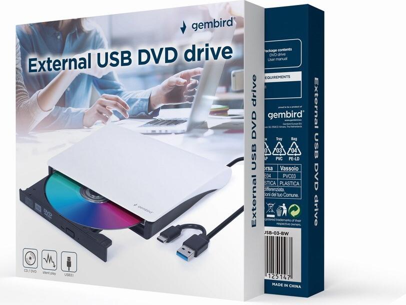• Gembird DVW EXT SLIM DVD-USB-031 white USB-C&3.1 DVD8x CD24x (DVD-USB-031-BW)