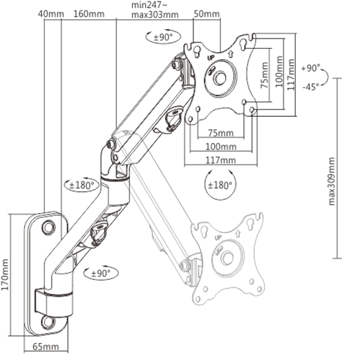 Das Gembird MA-WA1-02 Mounting Kit bietet eine praktische Lösung für die Montage von Flachbildschirmen bis zu 27 Zoll. Die Halterung ist mit einem verstellbaren Arm ausgestattet, der eine flexible Positionierung Ihres Bildschirms ermöglicht und Neigungseinstellungen von -45° bis 90° sowie Schwenkeinstellungen von -90° bis 90° bietet. Die Halterung besteht aus langlebigen Materialien wie Kunststoff, Aluminium und Stahl und ist für Gewichte zwischen 2 kg und 7 kg ausgelegt. Mit seinem integrierten Kabelmanagement sorgt der MA-WA1-02 für ein aufgeräumtes Erscheinungsbild und reduziert das Durcheinander in Ihrem Anzeigebereich. Er kann sowohl im Hoch- als auch im Querformat aufgestellt werden, was ihn zu einer vielseitigen Wahl für verschiedene Aufstellungen macht. Dieses wandmontierbare Kit eignet sich ideal für den Einsatz zu Hause oder im Büro und sorgt für einen optimalen Betrachtungswinkel für ein verbessertes visuelles Erlebnis.