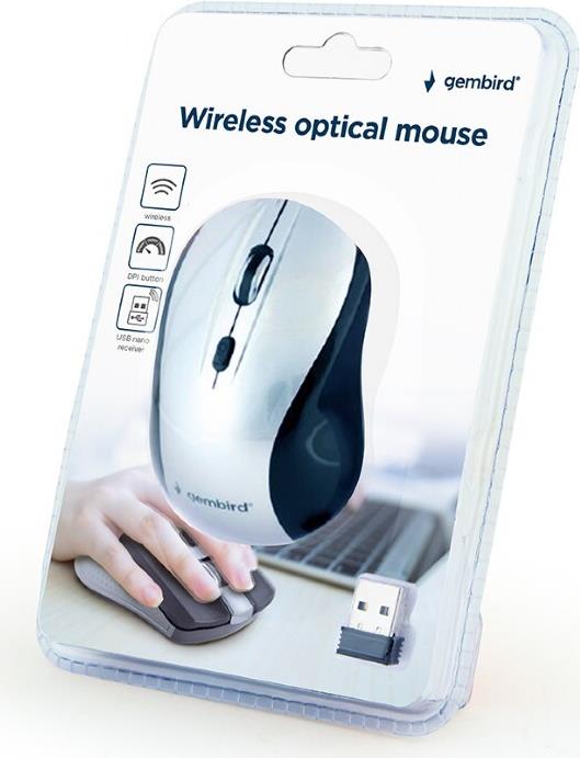 Gembird MUSW-4B-02-BS Funk-Maus Optisch Schwarz/Silber (MUSW-4B-02-BS)