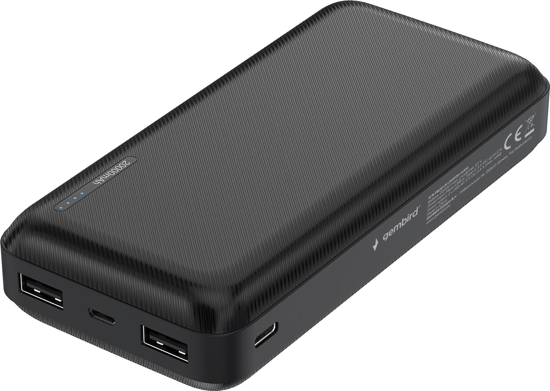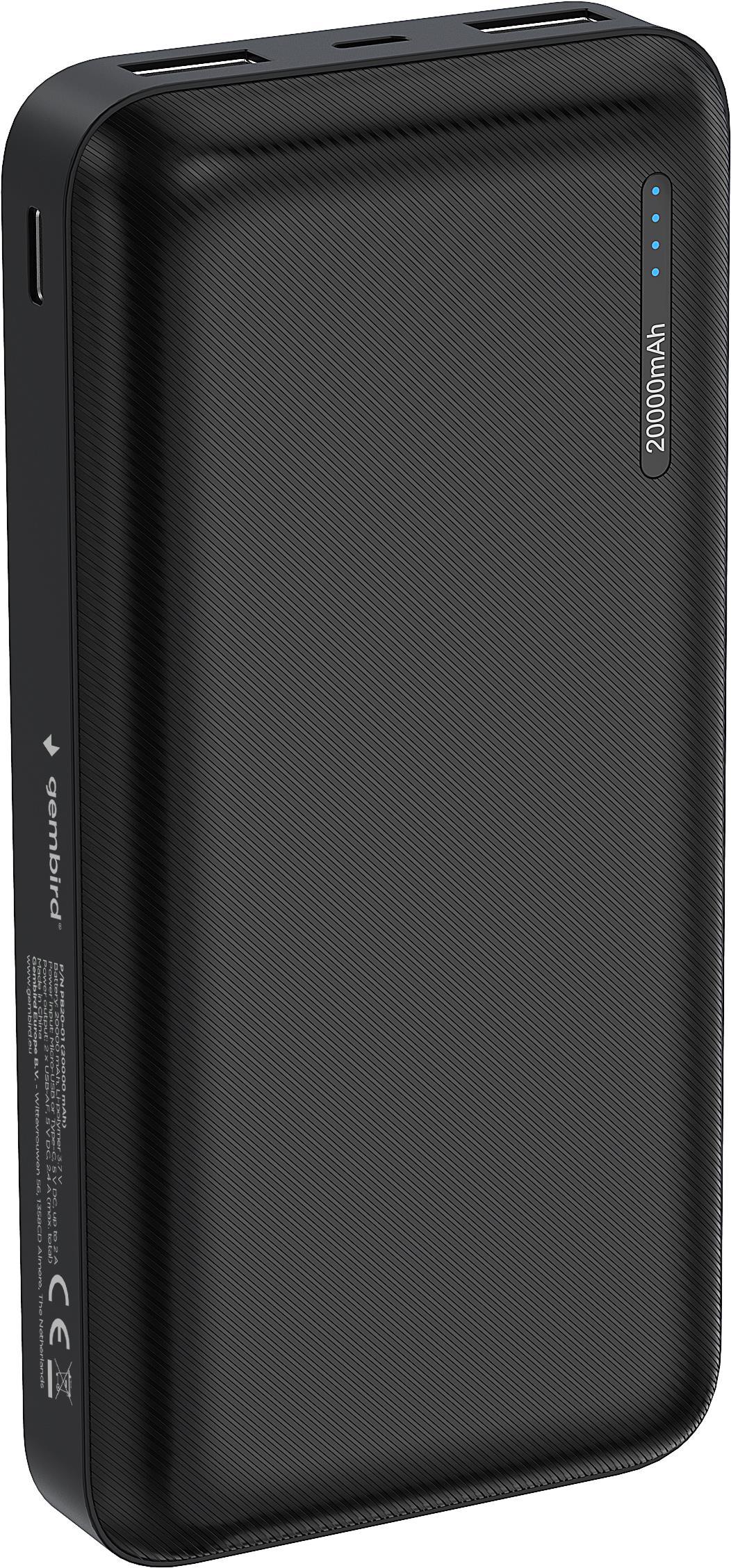 Gembird PB20-01 - Powerbank - 20000 mAh - 2,4 A - 2 Ausgabeanschlussstellen (2 x USB) - Schwarz (PB20-01)