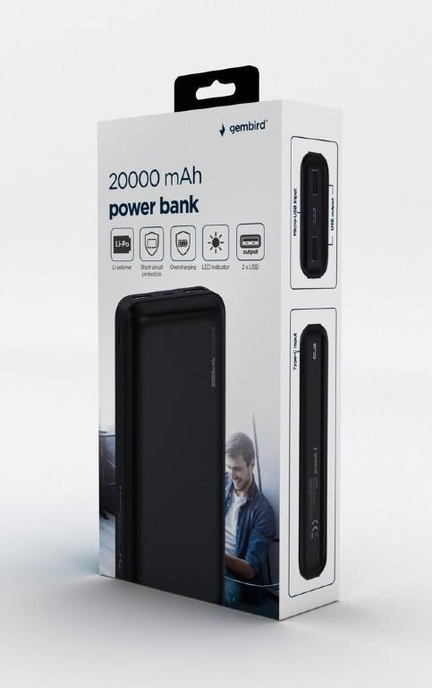 Gembird PB20-01 Powerbank - Li-Pol - 2 x USB |