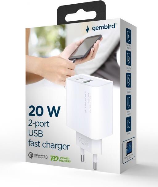 • Gembird TA-UC-PDQC20-01-W Ladegerät für Mobilgeräte Universal Weiß AC Schnellladung Drinnen (TA-UC-PDQC20-01-W)