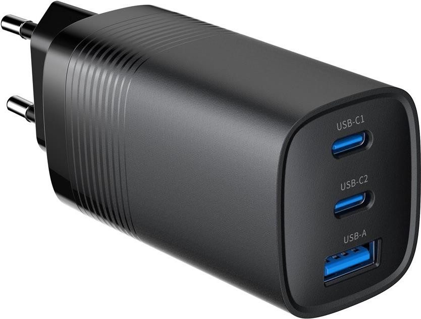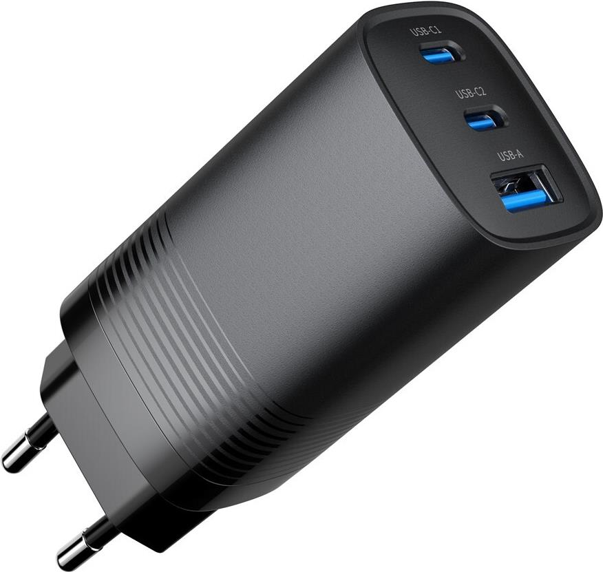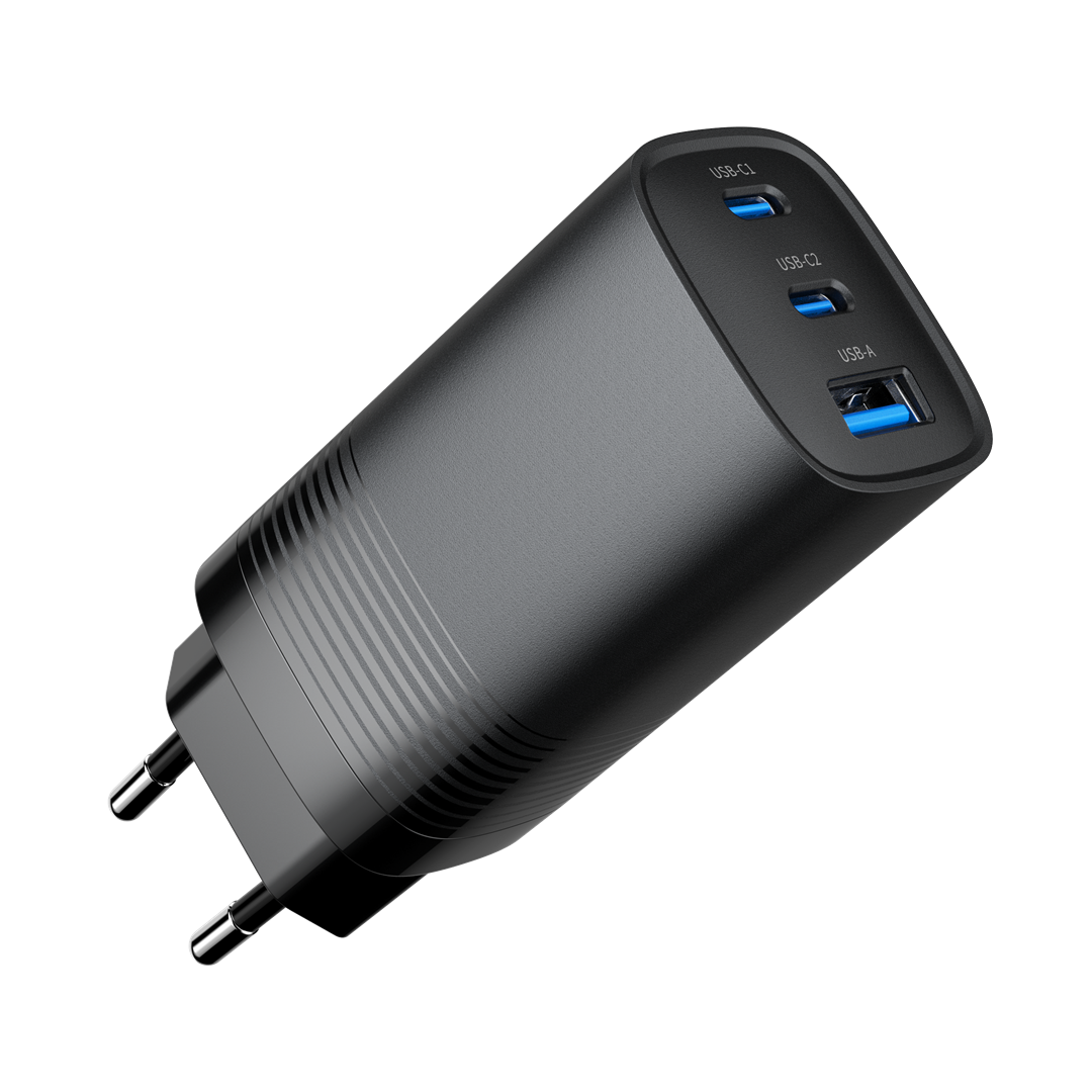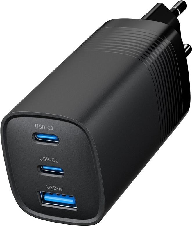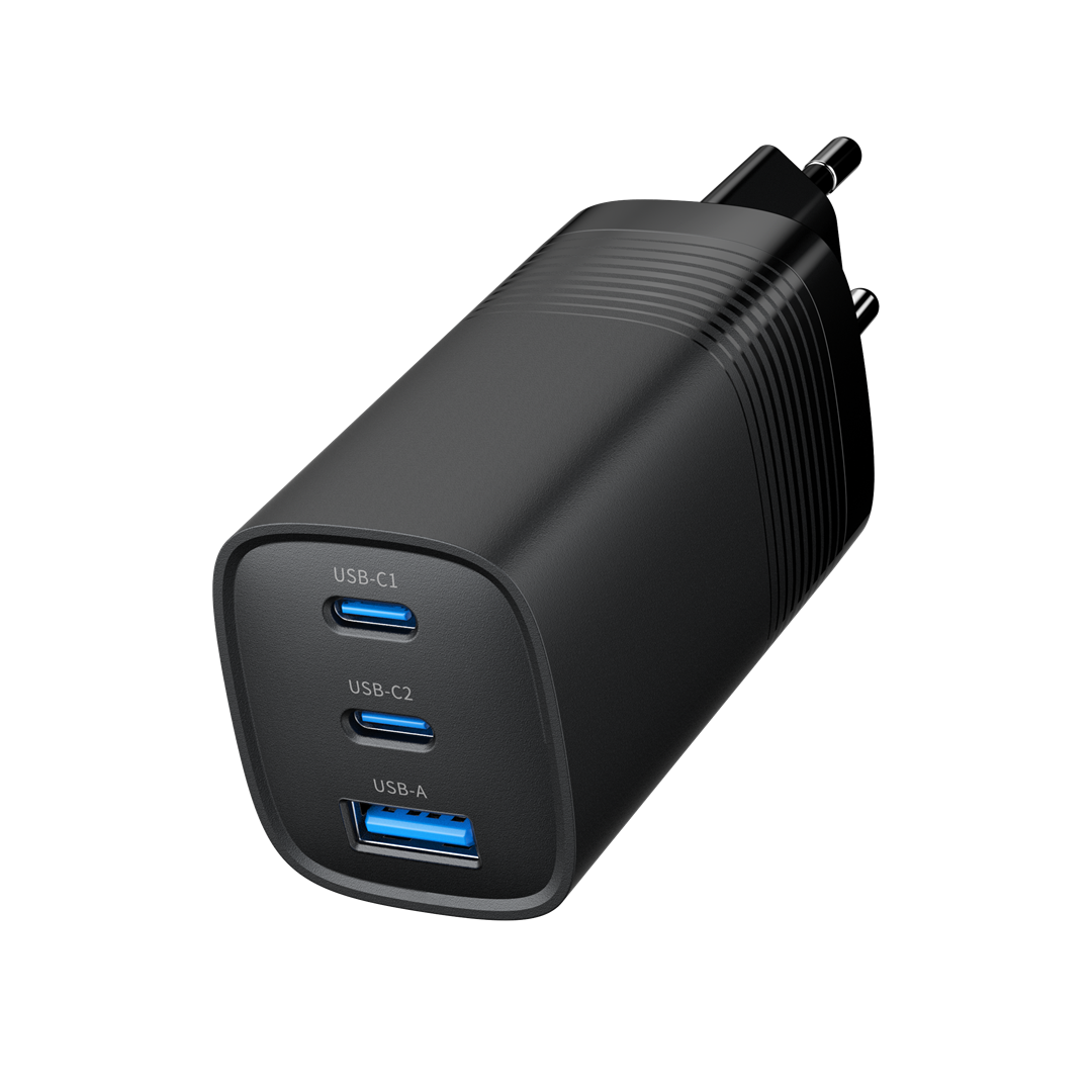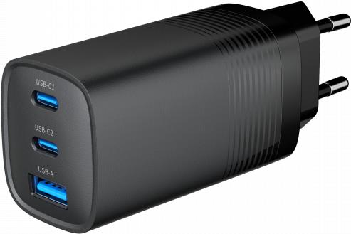 • Gembird TA-UC-PDQC65-01-BK 3-Port 65 W GaN USB PowerDelivery Schnellladegerät, Schwarz (TA-UC-PDQC65-01-BK)