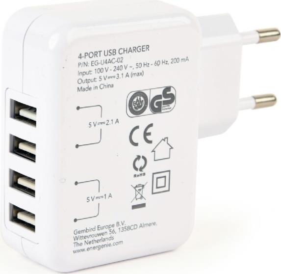 EnerGenie EG-U4AC-02 Ladegerät für Mobilgeräte Innenraum Weiß (EG-U4AC-02)