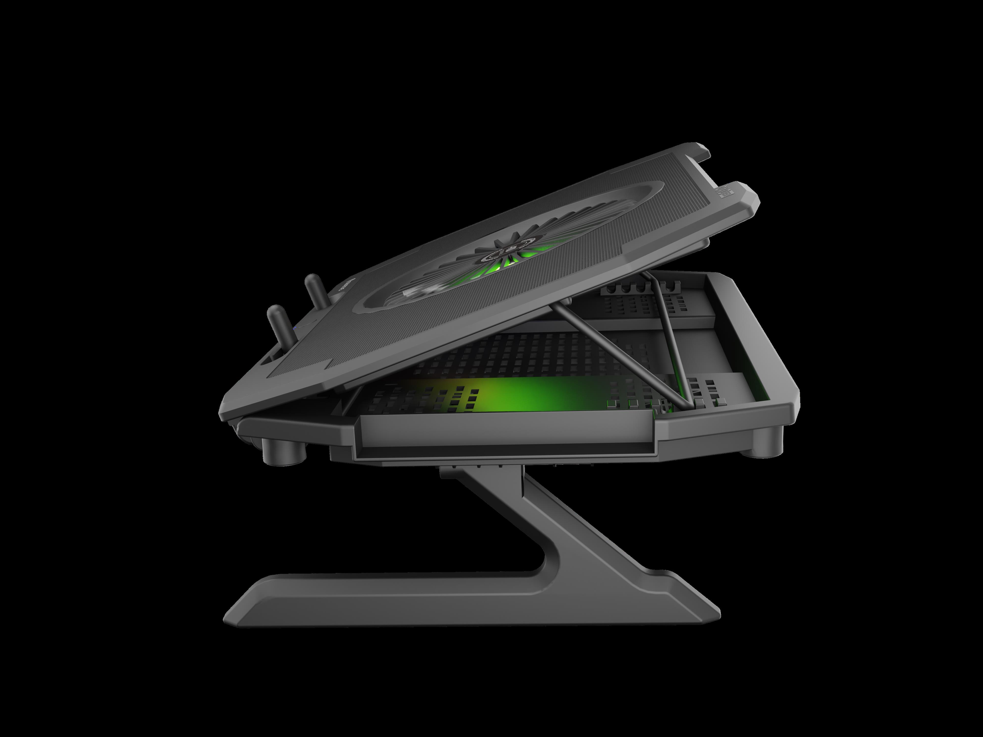 Der Genesis Oxid 850 RGB wurde entwickelt, um Ihr Laptop-Erlebnis mit seinen robusten Funktionen zu verbessern. Dieser Notebook-Ständer bietet eine in sechs Stufen einstellbare Neigung und ermöglicht so optimale Ergonomie beim Arbeiten oder Spielen. Ausgestattet mit fünf Lüftern mit einer Drehzahl von 1100 bis 2500 U/min und einem Luftstrom von 70 cfm verhindert er eine Überhitzung bei längerem Gebrauch. Der RGB-LED-Streifen verleiht ihm eine stilvolle Note und macht ihn zu einem Begleiter für alle, die sowohl Funktionalität als auch Ästhetik schätzen. Der aus einer Kombination aus Metall und ABS-Kunststoff gefertigte Ständer gewährleistet Langlebigkeit bei gleichzeitig geringem Gewicht. Der integrierte 2-Port-USB-Hub bietet zusätzliche Anschlussmöglichkeiten und verbessert Ihre Einrichtung ohne Kabelsalat. Der Genesis Oxid 850 RGB ist mit Notebooks bis zu einer Größe von 17,3 Zoll kompatibel und bietet ein ausgewogenes Verhältnis zwischen Leistung und Design, sodass er sowohl den Anforderungen von Alltagsnutzern als auch von Gamern gerecht wird.