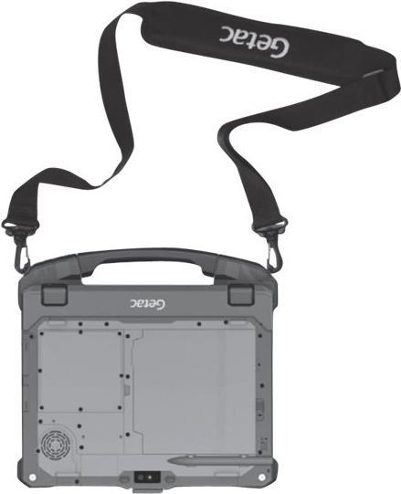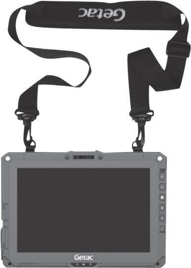 Der Schultergurt wird an zwei Halterungen auf der Rückseite des Tablets befestigt und kann auf alle Körpergrößen eingestellt werden, sodass er sich sowohl um den Körper als auch über die Schulter tragen lässt. Der Tragriemen ist robust und widerstandsfähig, ermöglicht das freihändige Tragen des Tablets und verhindert, dass Sie das Gerät beim Transport versehentlich fallen lassen. Der Schultergurt kann über zwei D-Ringe am eingebauten Griff auch an der abnehmbaren Tastatur (separat erhältlich) befestigt werden.