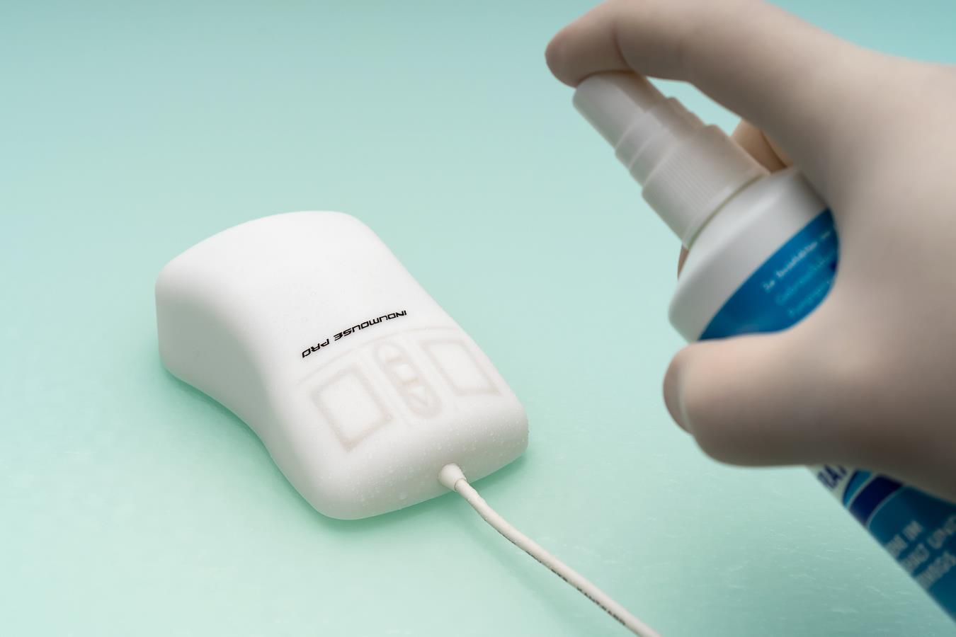 Doch die InduMouse Pro kann noch mehr: Ihr hoher Schutzgrad IP68 ermöglicht eine umfassende und gründliche Reinigung und Desinfizierung. Ein Nano-Silber-Additiv im Silikonmantel bietet zusätzlichen Schutz vor Keimansiedlungen. Diese Maus hilft also aktiv bei der Vermeidung einer Ausbreitung von Krankheitserregern, und hält damit einen hohen Hygieneschutzgrad ein.