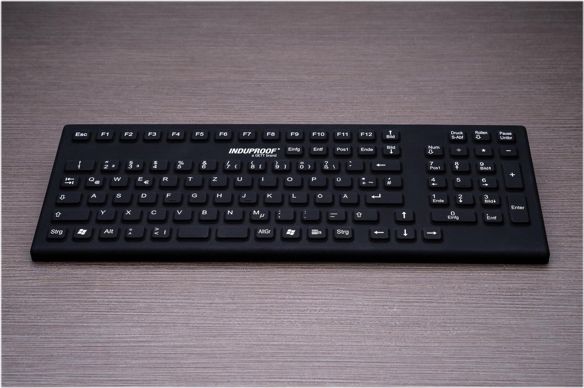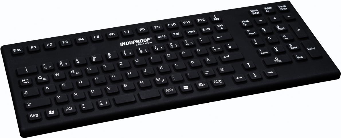GETT InduProof Smart Classic Schwarz USB Silikon IP68 Tastatur desinfizierbar wasserdicht schwarz 106 Tasten (DE) (KG24206)