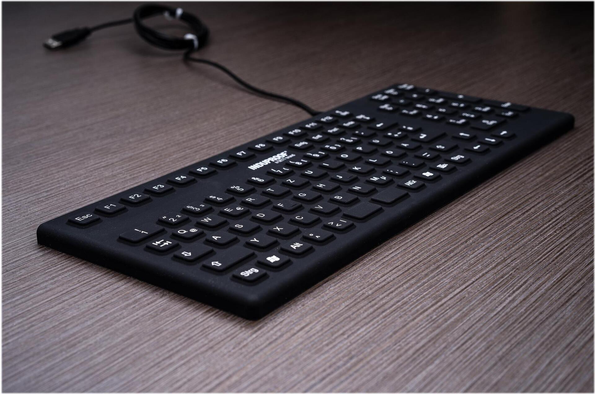 Die TKG-106 besitzt ein vollständiges Tastenset mit Nummernblock und überzeugt durch ein angenehmes Tastgefühl bei höchstem Schutzgrad. Daher eignet sich der Tastatur-Bestseller für den Einsatz in nahezu allen hygienesensiblen Bereichen. Die TKG-106 lässt sich rundum reinigen und desinfizieren.