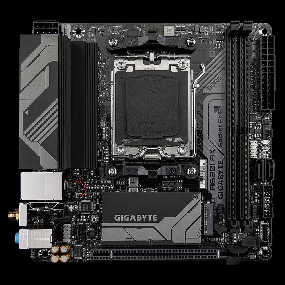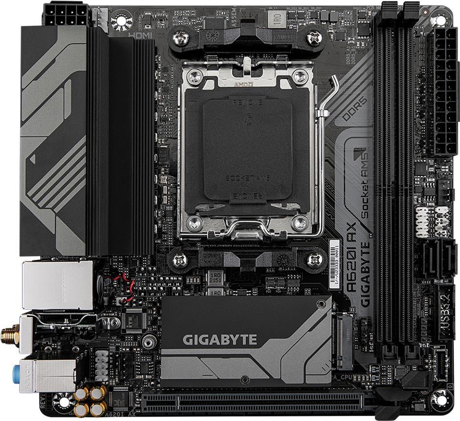 | Produktbeschreibung | Gigabyte A620I AX - 1.0 - Motherboard - Mini-ITX - Socket AM5 - AMD A620 |