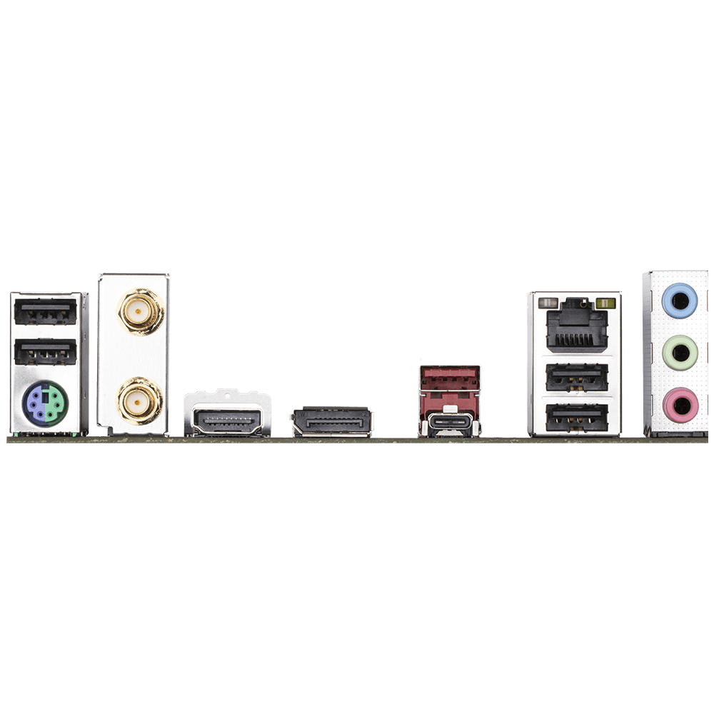 | Schnittstellen | 1 x DisplayPort 1 x HDMI 1 x USB-C 3.2 Gen2x2 1 x USB 3.2 Gen 2 2 x Antenne 4 x USB 2.0 1 x Mikrofon - Mini-Klinkenstecker 1 x Audio Line-In - Mini-Klinkenstecker 1 x Audio Line-Out - Mini-Klinkenstecker 1 x LAN (Gigabit Ethernet) 1 x PS/2-Tastatur/-maus |