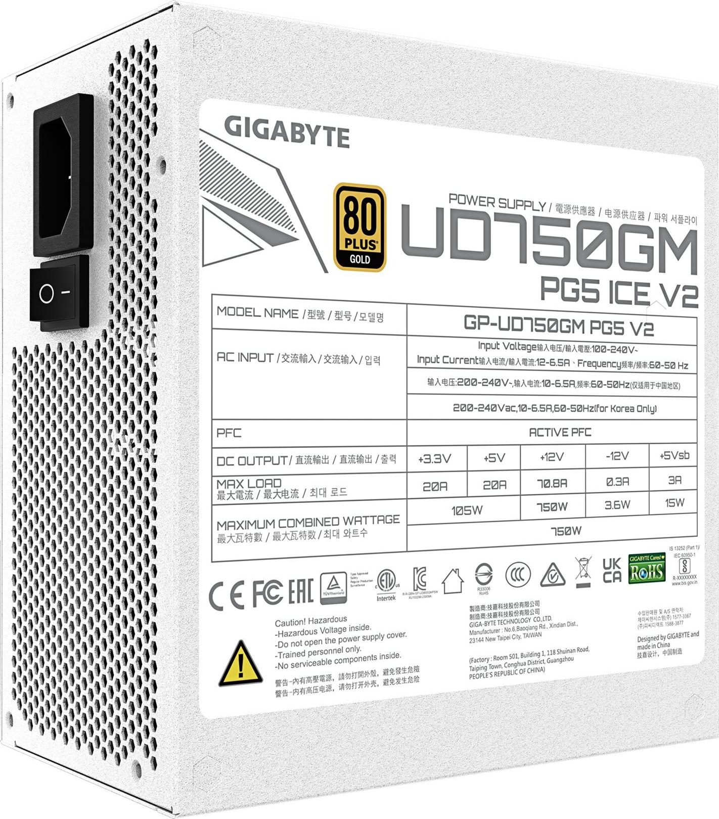 GIGABYTE UD750GM PG5 V2 ICE 750W ATX Netzteil, 80+ Gold, PCIe5.1, ATX3.1 voll modular (GP-UD750GM PG5 ICE)